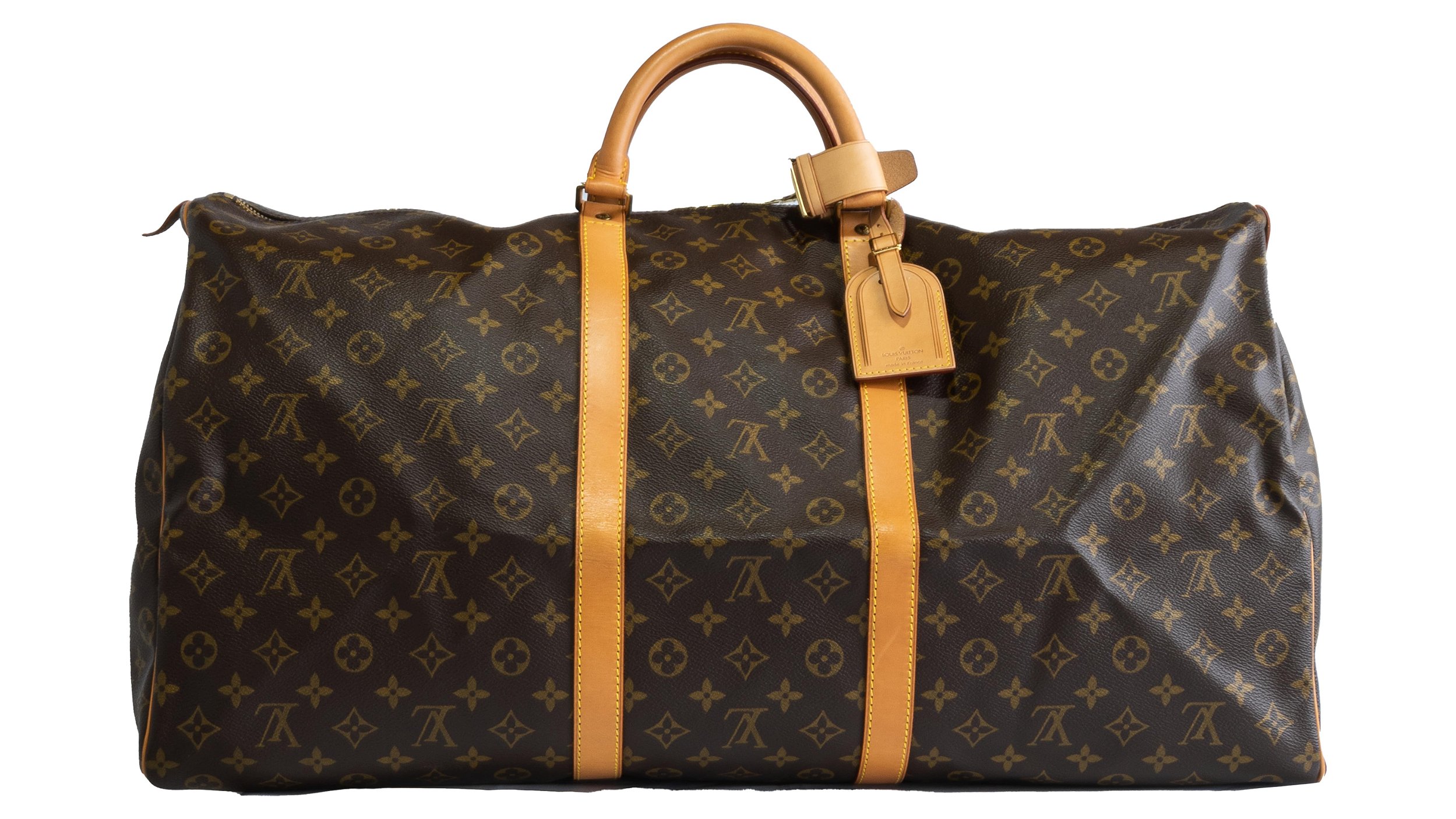 * Canvas Monogram marrom e detalhes em couro Vachetta;