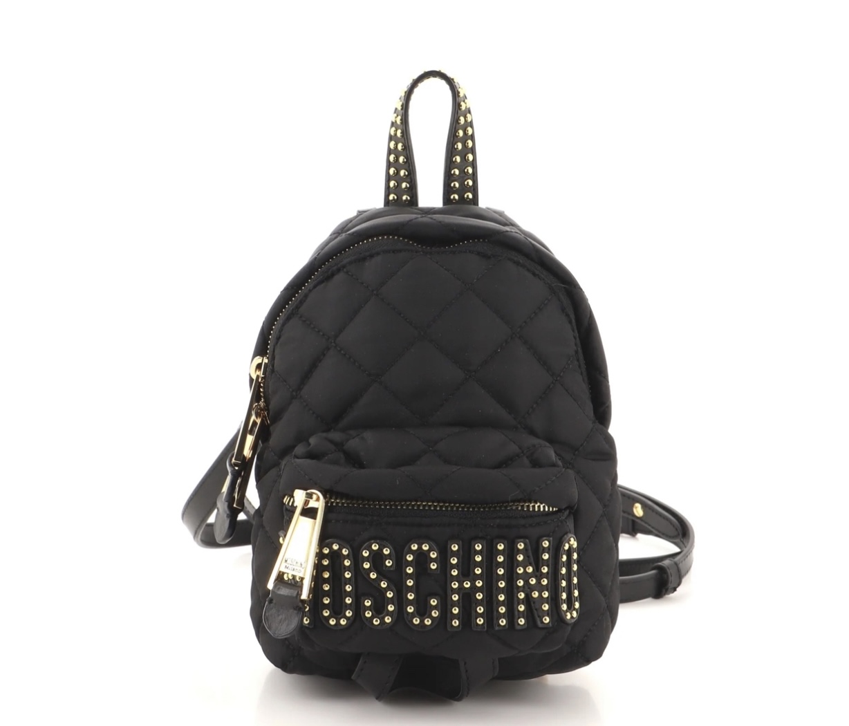 MOSCHINO MINI MOCHILA MATELASSÊ COM PLACA DE LOGO EM NYLON
